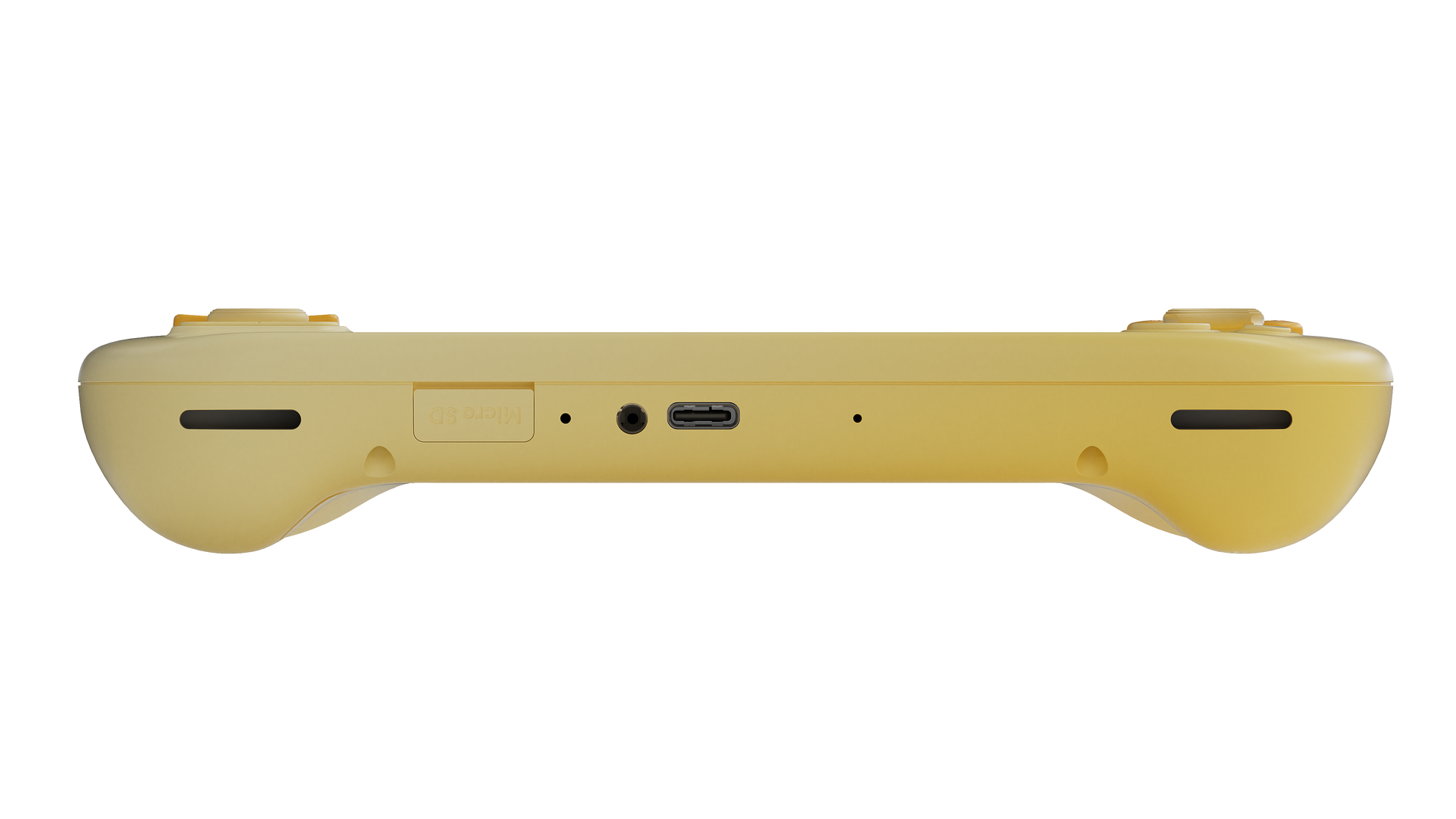 Recessed RGB Hall Effect joysticks and linear Hall triggers.